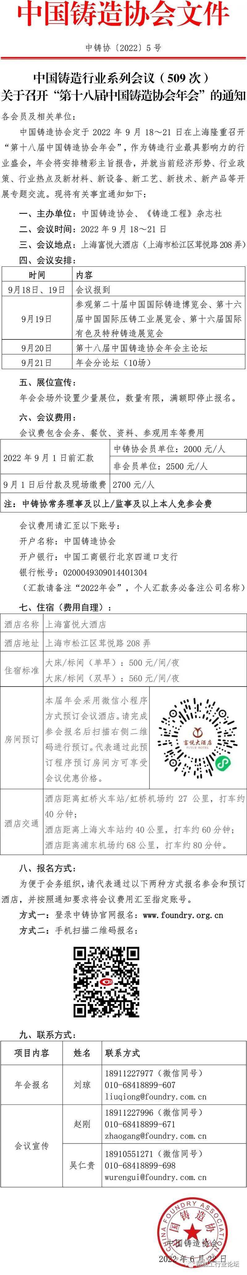 關于召開“第十八屆中國鑄造協會年會”的通知